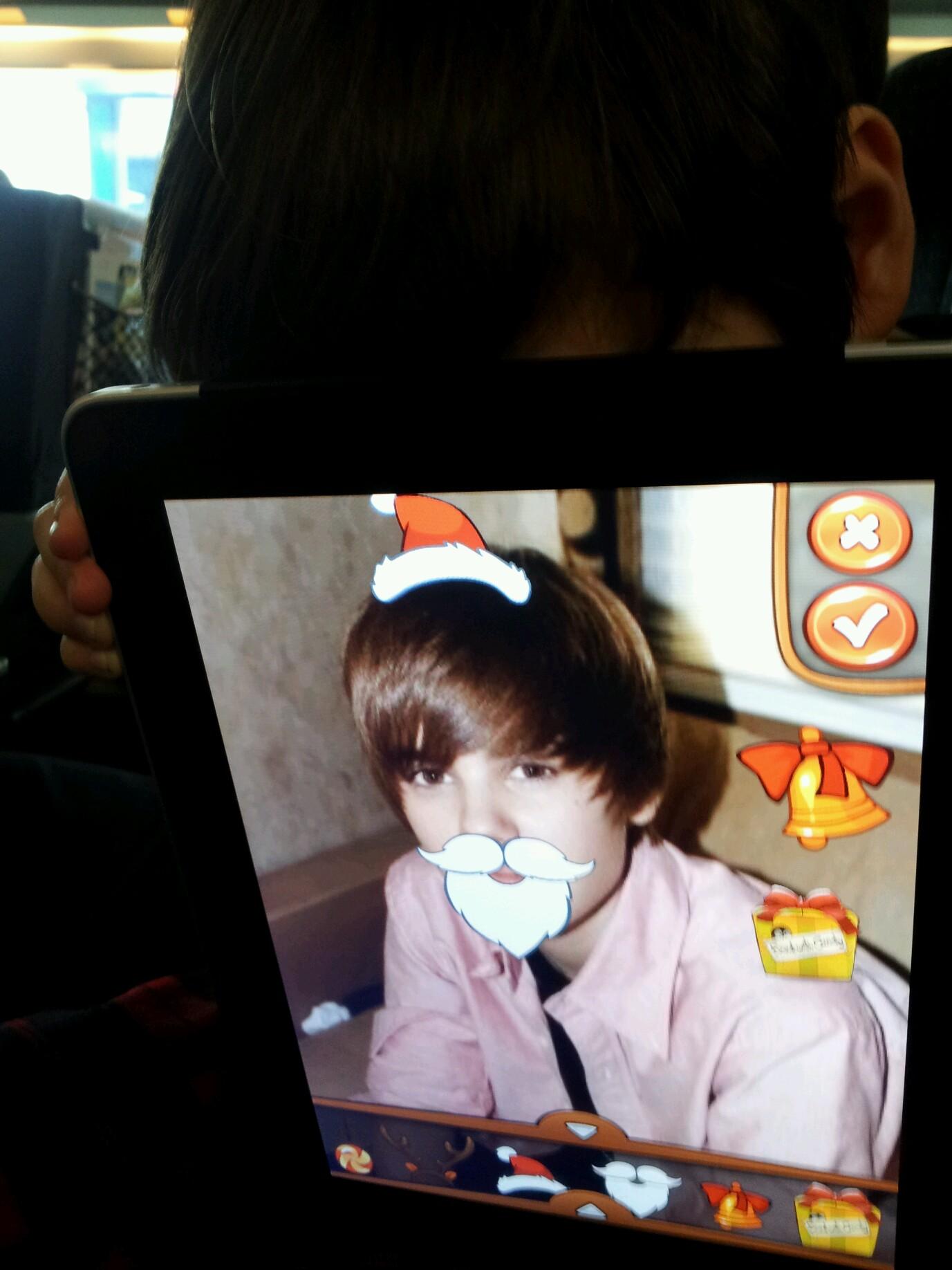 Lincoln pegang iPad / tab yang ada gambar Justin Bieber :)